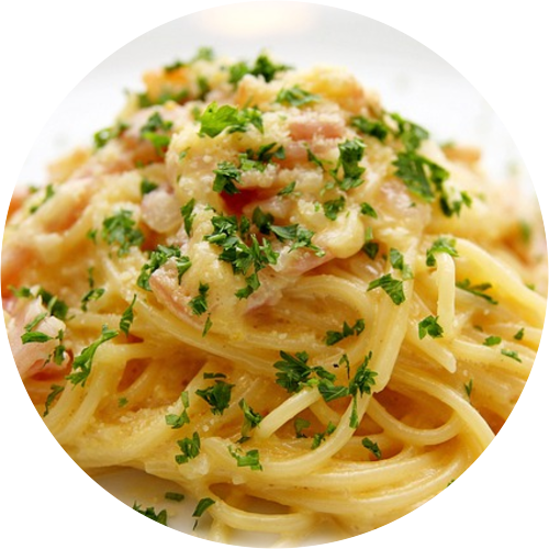Cream, eggs, bacon. To place an order, please specify the time you'd like to be served and confirm below.