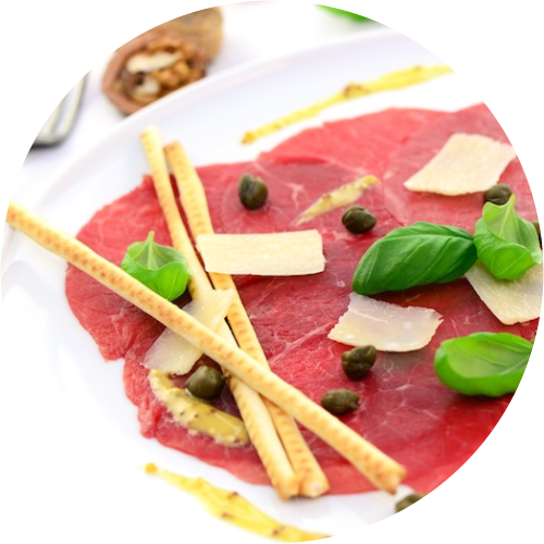 Beef Carpaccio with Parmesan. To place an order, please specify the time you'd like to be served and confirm below.