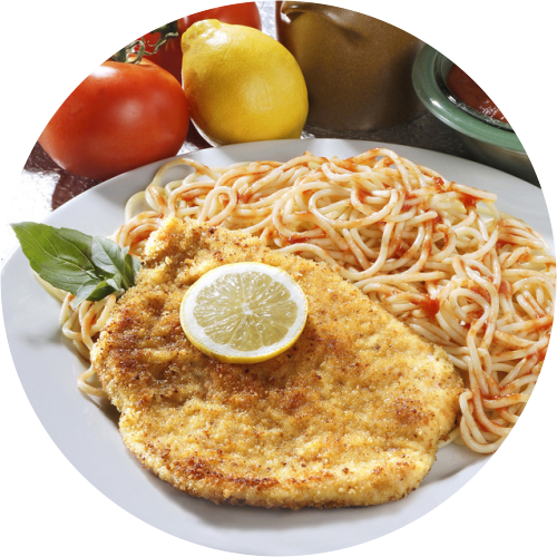 Breaded chicken escalope. To place an order, please specify the time you'd like to be served and confirm below.