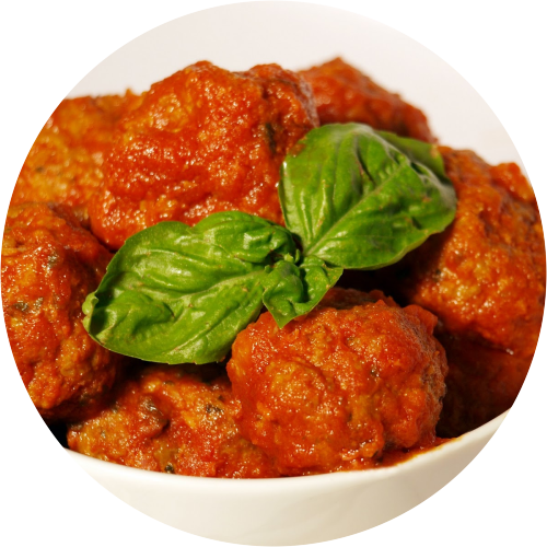 Beef balls, tomato sauce. To place an order, please specify the time you'd like to be served and confirm below.